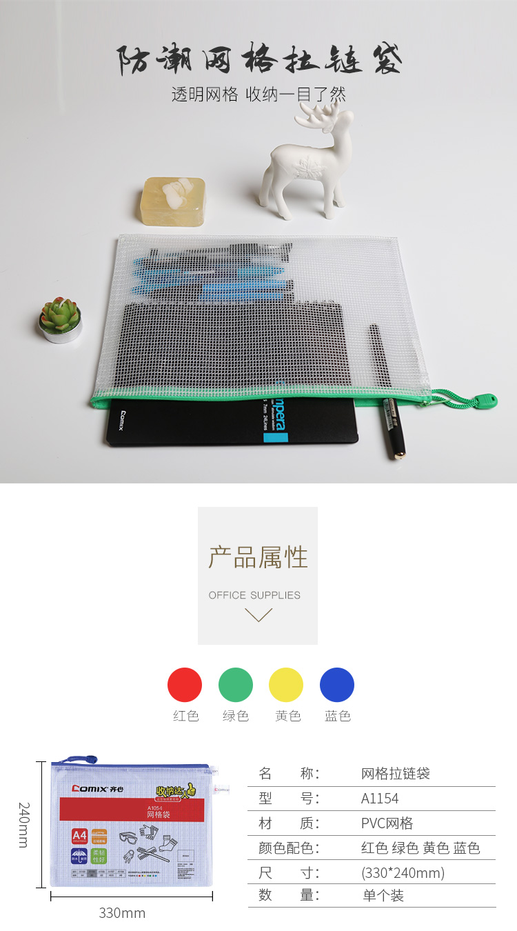 商品名称:齐心A1154超实惠网格袋,A4