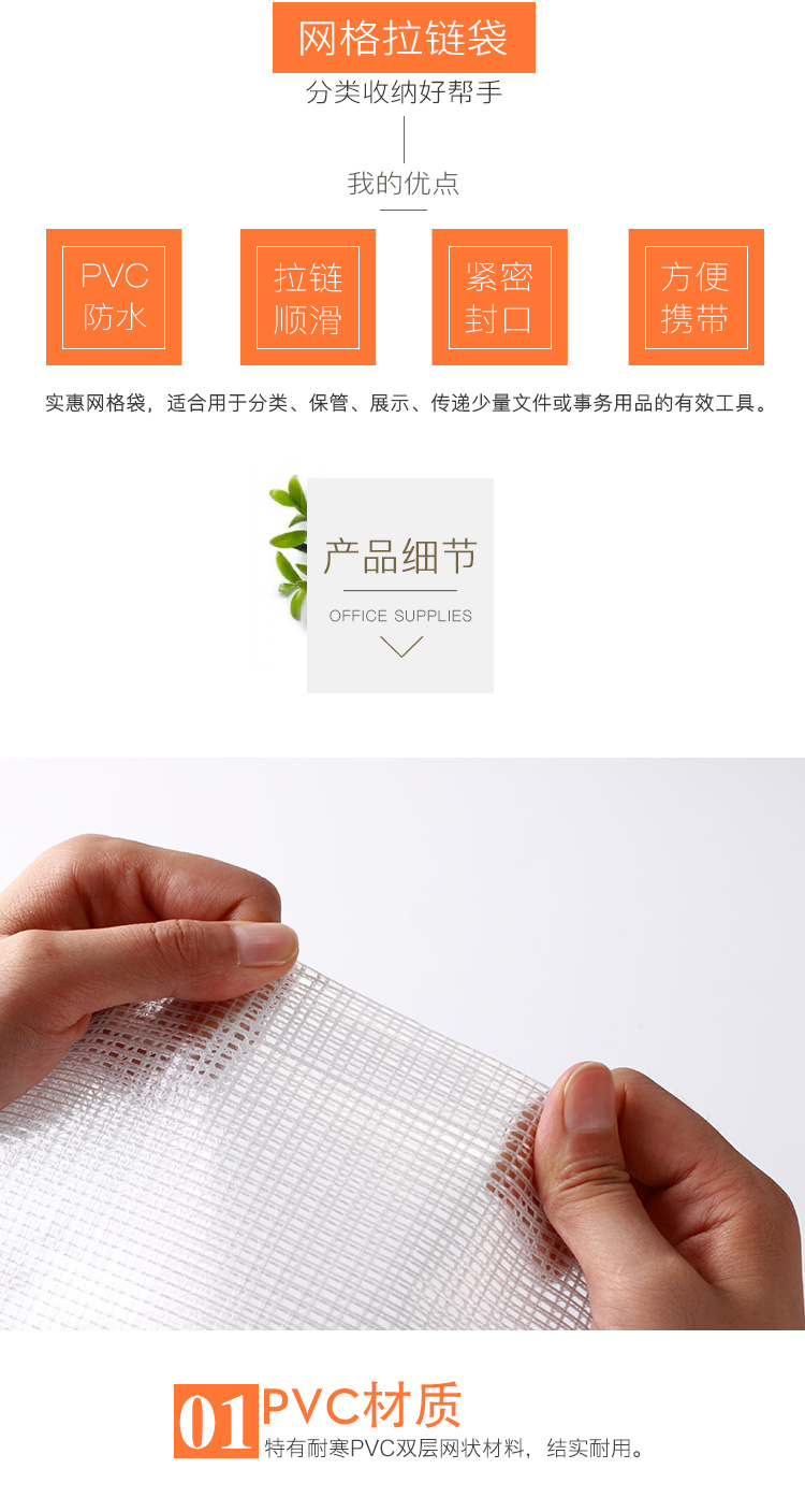 自营齐心A1154超实惠网格袋,A4