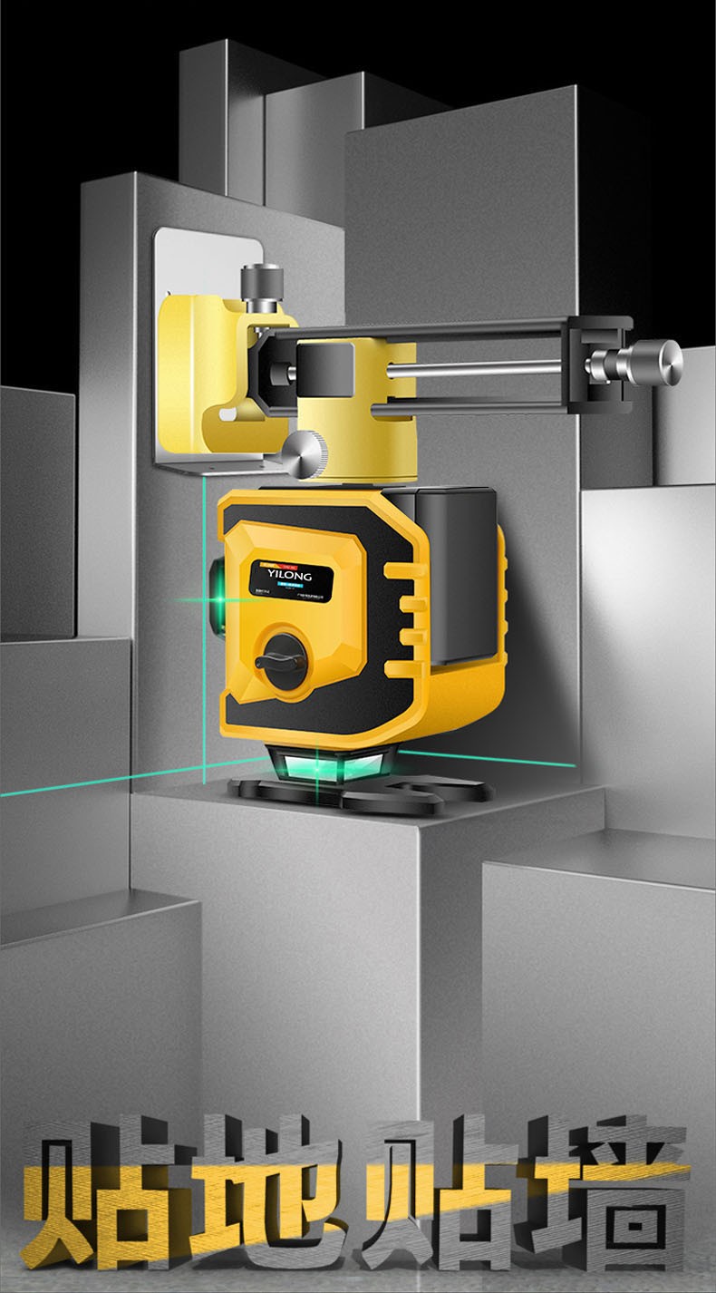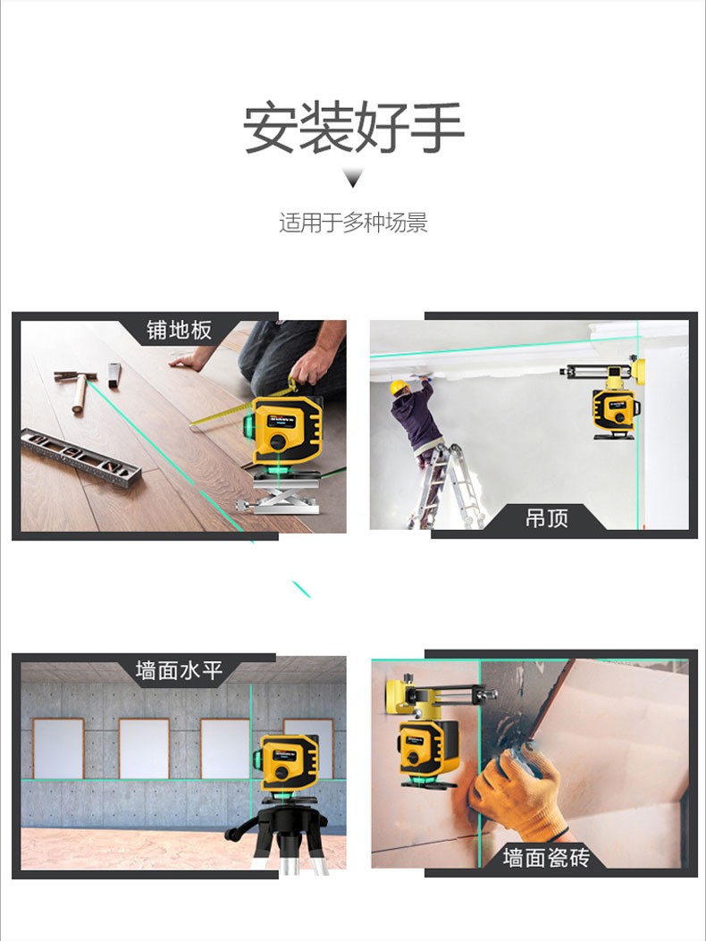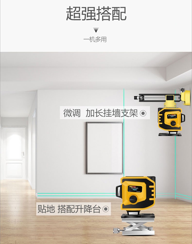 商品名称:12线墙地两用水平仪绿光16线一体机高精度自动打线8线室内外强光平水激光红外线平水仪 活动款绿光8线(单电)+上墙架