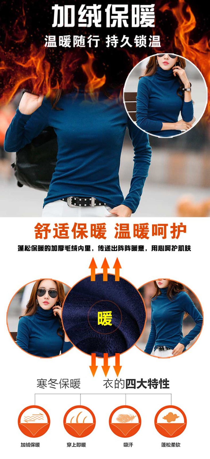 商品名称:PHJ 高领打底衫女加绒加厚2020秋冬新品大码显瘦大码长袖女t恤上衣 K191 黑色-加绒款 S