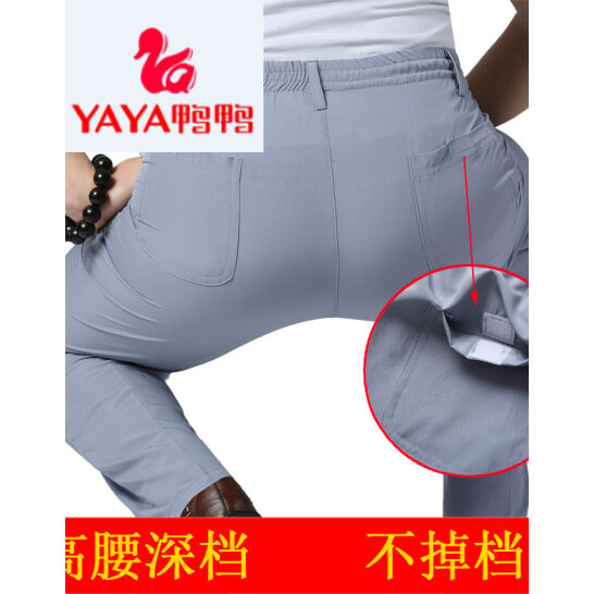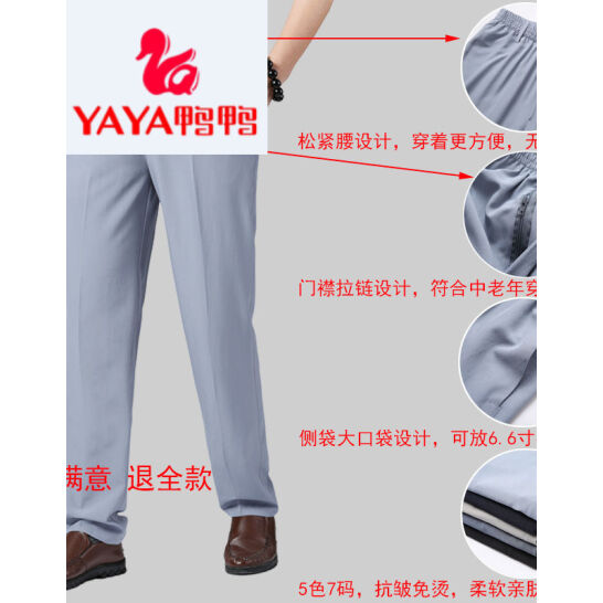 商品名称:鸭鸭(yaya)旗舰正品2020新款冰丝休闲裤男宽松大码爸爸装中老年人薄款直筒松紧高腰长裤子 藏青 5XL/34建议180-200斤