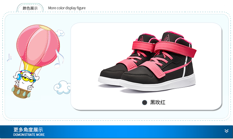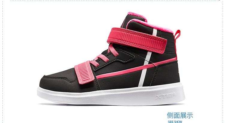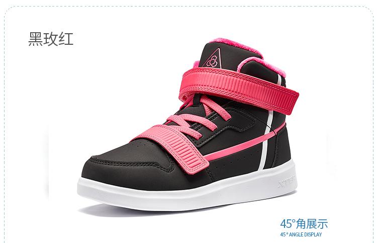 商品名称:特步童鞋 2019年春季新款儿童棉鞋高帮女中大童板鞋时尚运动鞋 681414379138 黑玫红 34